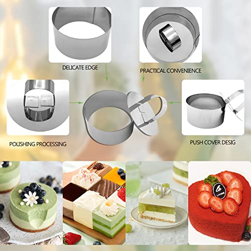 ✘ Einzigartiges Design: Jede backringe kuchenring edelstahl ist mit einer entsprechenden schubstange ausgestattet, die den kuchen leicht verdichten oder den fertigen kuchen aus der form nehmen kann, damit ihr mousse kuchen eine bessere form hat.