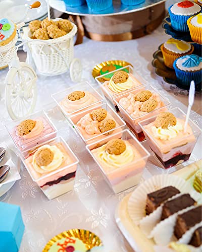 50 Pezzi Mini Coppette Da Dessert, 160ml Coppe Da Dessert con 50 cucchiaiQuadrate In Plastica Coppa Parfait Trasparente Ciotola Da Portata Riutilizzabile Per Dessert Budino Mousse Party