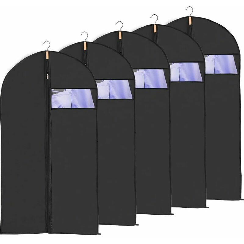 Riceverai - 5 pezzi maniche per indumenti nere 60x120 cm (la dimensione normale senza vestiti, c'è un errore di 1 cm) per riporre giacche stagionali, magliette, cappotti corti, ecc. contro insetti, polvere e previene che i tuoi vestiti si raggrinziscano e sbiadiscano 【Progetta il design della finestra trasparente】 Abbiamo migliorato il prodotto che ha aggiunto la copertura dell'armadio;