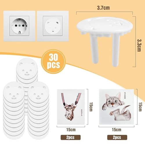 【La confezione include】Il pacchetto contiene 30 Copriprese per Bambini, non c'è bisogno di acquistare più volte, abbastanza per la maggior parte delle famiglie, inoltre, ogni pacchetto viene fornito anche con 4 pezzi di adesivi di gatti carini.