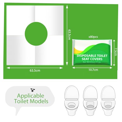 80 Pezzi Copriwater Biodegradabili Usa e Getta, Copri WC Usa e Getta Monouso per Bambini e Adulti, Coprisedile Igienico Water, Copri Water da Viaggio/Hotel/Ospedali, 8 Confezioni 63.5 * 63.5cm