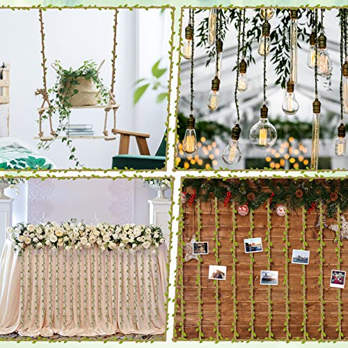 4 Pezzi Corda di Canapa con Foglie Verdi da 10m, Nastro a Foglia Artificiale Vite Verde Artificiale Ghirlanda Naturale Luta Spago Decorazione per DIY Nozze Compleanno Festa Casa Balcone Giardino