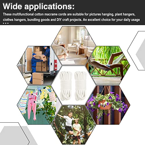 2 Pezzi Corde in Morbido Cotone Cordoncino Multifunzione Lungo 10 m Spesso 8 mm Spago di Filo Intrecciato di Cotone Artigianale da Giardino per Accessori da Arrampicata Fai da Te (Bianco)