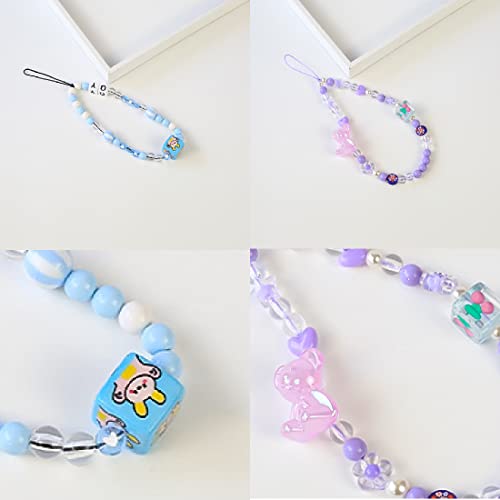 2 Pezzi Cordino per Cellulare Perline, piccolo orso Cordini per Telefono con Perline Cinturino da Polso Collana per Cellulare Anti-Smarrimento Ciondolo a Mano per Cellulare Con Perline Telefono Charm