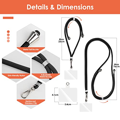 AMNF 2 pezzi Cordino per Telefono Cellulare (1 collare + 1 tracolla), Corda per Smartphone Universale, Collare Rimovibile e Regolabile Compatibile con Maggior Parte Degli Smartphone Cordino(Nero)