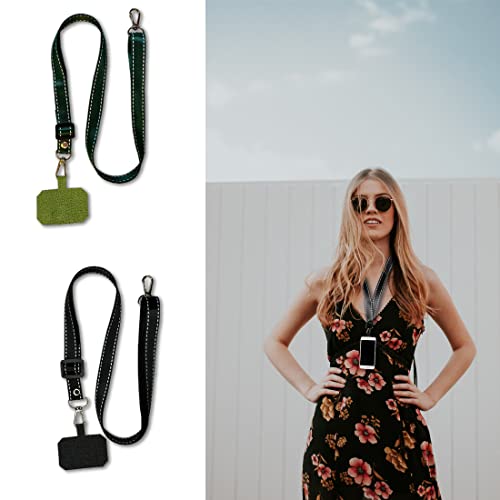 Fezf 2 Pezzi Cordino per Telefono, Cordino per Cellulare Universale, Regolabile Cordino Tracolla,Cordini per Telefono Intorno al Collo,per iPhone Huawei e Tutti Gli Smartphone(Nero + Verde Scuro)