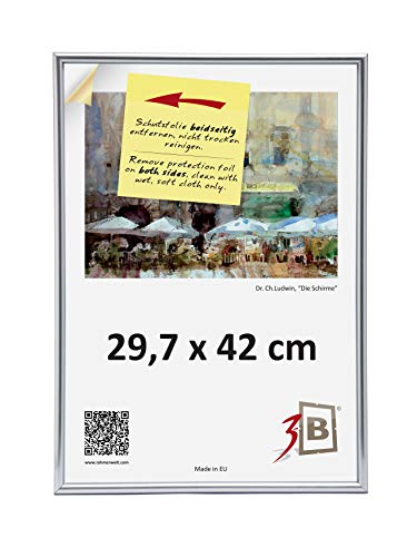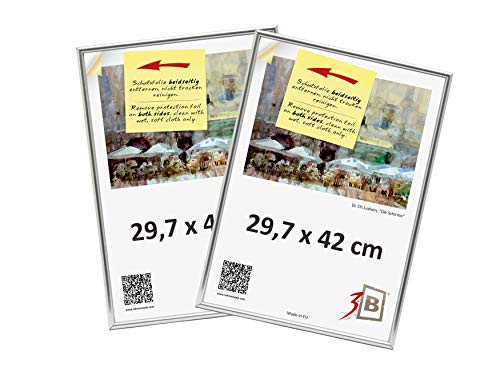 3-B Set di 2 pezzi cornici FOTO - 29,7x42 (A3) - argento - portafoto in plastica per foto con vetro acrilico