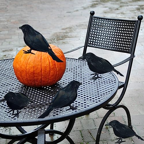 5 Pezzi Corvi di Halloween Artificiali Piumati Decorazioni Corvi Realistico Corvo Spaventoso Piuma Nera Uccello Corvo per Halloween Festa Casa Stregata Puntelli Decorazioni Giardino (A)