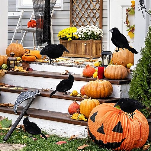 6 Pezzi Corvi di Halloween, Decorazione Halloween Corvo, Corvo Nero di Halloween, Corvi Piumati Artificiali, Halloween Corvi Decorazione, Decorazioni Realistiche di Corvo, per Festa di Halloween