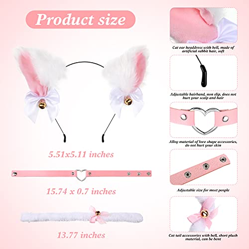 Kit per costumi cosplay: la confezione che riceverai include 3 kit di costumi per cosplay per gatti, che contiene 1 fascia per orecchie di gatto, 1 girocollo in pelle rosa e 1 coda lunga di gatto in peluche con campana, piacevole da abbinare ai tuoi abiti per feste in costume