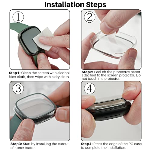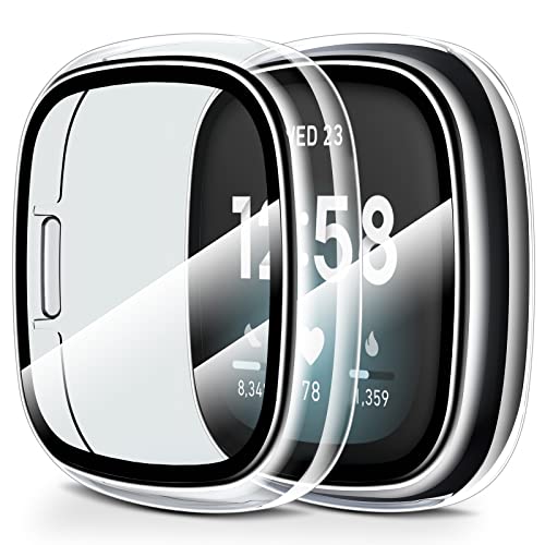 LK 2 Pezzi Cover Compatibile con Versa 3 / Sense Vetro Temperato, Sottile Custodia Rigida PC Schermo Rigida HD Clear Pellicola Protettiva Cover Custodia, Anti-Graffio Cover