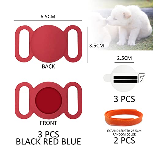 3 Pezzi di Cover in Silicone Tracker (Nero Rosso e Blu) e 3 pellicole protettive e 2 collari, Protezione Anti-smarrimento di Sicurezza, Cover Tracker per Collare per Animali Domestici