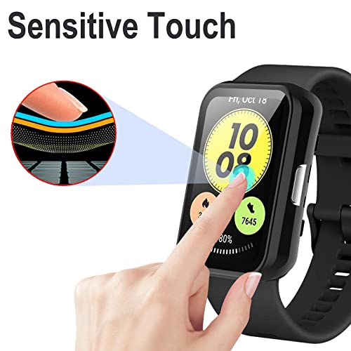 2 Pezzi - Cover per OPPO Watch free/Huawei Watch Fit + Pellicola Vetro, Custodia per TPU Proteggi Schermo [Copertura Completa] Vetro Temperato-(Nero + Nero)