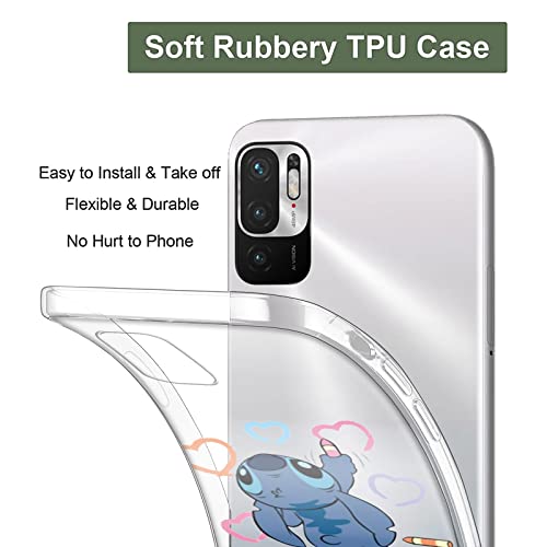 2 pezzi - Cover per Xiaomi Redmi Note 10/Note 10T 5G 6,5",Custodia Morbide Silicone con Cute Stitch Cartone Animato Disegni Trasparente Ultra Sottile Antiurto Protettivo Case per Xiaomi Poco M3 Pro