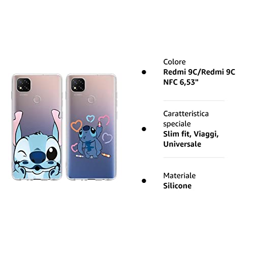 2 pezzi - Cover per Xiaomi Redmi 9C/Redmi 9C NFC 6,53",Custodia Morbide Silicone con Cute Stitch Cartone Animato Disegni Trasparente TPU Bumper Ultra Sottile Antiurto Protettivo Case per Redmi 10A