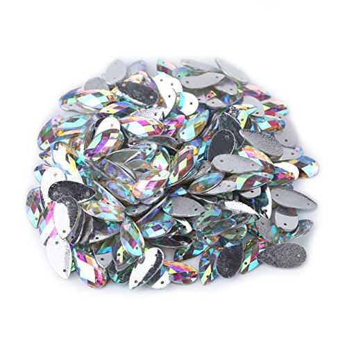200 Pezzi Cristallo Decorazione Strass, 2 Colori AB Trasparente Gemme Acrilico da Cucire Strass con Doppi Fori, Strass Gemme Cristalli da Cucire Fai Da Te(9 * 18mm-AB Color)