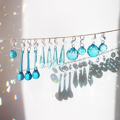 H & D - 20 pezzi di cristallo blu a goccia lampadario prismi prismi appeso palla di vetro prisma decorazione