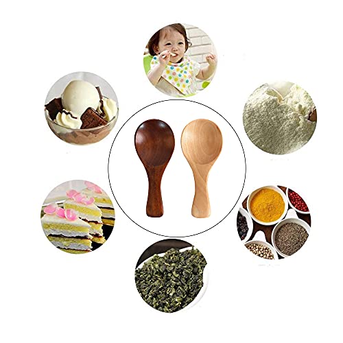【Materiali di Alta Qualità】Il piccolo cucchiaio di legno è realizzato in legno naturale, con pregevole fattura, superficie liscia e vernice naturale. È sicuro e non tossico. È un buon sostituto per cucchiai di altri materiali.