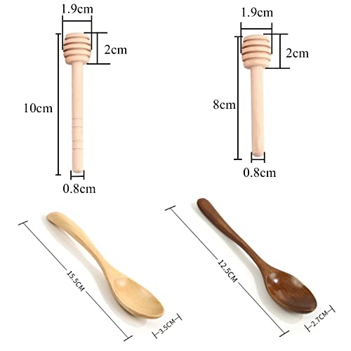 20 Pezzi Cucchiaini Bastoncini Miele Legno da 8 cm, 10 cm, Piccoli Mini Spargimiele con 4 Pezzi Cucchiaio per Miele, per Miele, per Matrimonio Bomboniere Ringraziamento