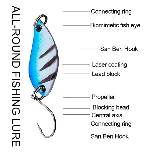 Set di 12 pezzi: Il set contiene 12 esche a cucchiaio per trote di diversi colori, in stili da 2,5 g, per soddisfare le diverse esigenze di pesca. La grande quantità di esche a cucchiaio è sufficiente per un utilizzo duraturo.