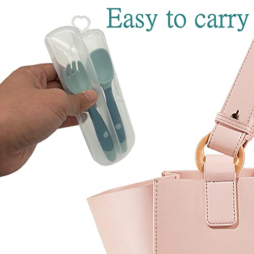 2 pezzi di cucchiaio e forchetta cucchiaio da addestramento per l'alimentazione dei bambini facile da impugnare cucchiaio da apprendimento pieghevole per l'alimentazione dei bambini (blu)