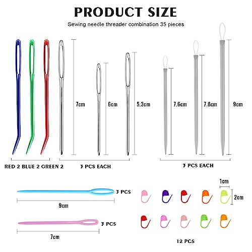 Contenuto della confezione: un totale di 34 kit aghi da ricamo, tra cui 9 aghi da cucito in lana dritti e 6 aghi curvi, 3 aghi da filo, 10 marcatori da cucito e 6 aghi da maglia in plastica. Quantità abbondanti e dimensioni diverse per soddisfare le vostre esigenze di tessitura.