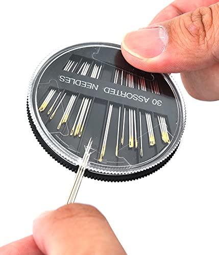 Custodia Squisita: 90 pezzi aghi per cucire a mano, plastica rotonda compatta. Tutti gli aghi di varie dimensioni: 3 pezzi da 44 mm (Jumbo Eye), 6 pezzi da 51 mm (Big Eye), 9 pezzi da 46 mm (Big Eye), 24 pezzi da 42 mm, 24 pezzi da 37 mm, 24 pezzi da 31 mm. Forniamo 2 threader (omaggio)