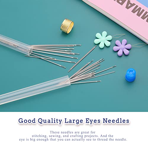 36 Pezzi aghi da cucito, 6 aghi a cruna grande, aghi da cucito a mano con bottiglia dell'ago, filo di perline, aghi in acciaio inossidabile per cucito e artigianato