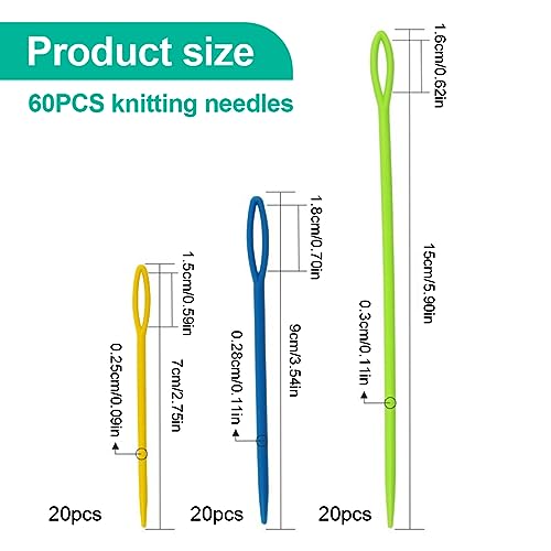 DDKY 60 Pezzi Di Aghi Da Cucito In Plastica Con Occhio Grande, Per Principianti,7 Cm/9 Cm/15 Cm Tre Misure,Aghi Per Cucire a Mano Aghi Da Lana Ago