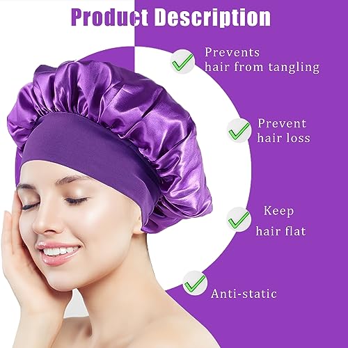【2 Pezzi cuffia in raso】Riceverai 2 cuffia seta capelli ricci in diversi colori: nero e viola scuro da indossare durante il sonno, e ti forniamo anche 2 elastici neri per legare i capelli lunghi prima di indossare il berretto di raso, fai indossare più comodo.