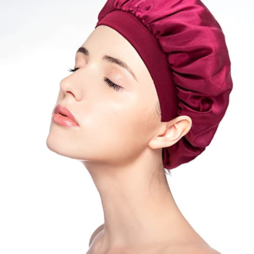 2 Pezzi Cuffia Seta Capelli Ricci con 5 PCS Cuffie Doccia Monouso, Cuffia Capelli Ricci Notte Bonnet per Capelli Ricci, Cappello da Notte per Donna