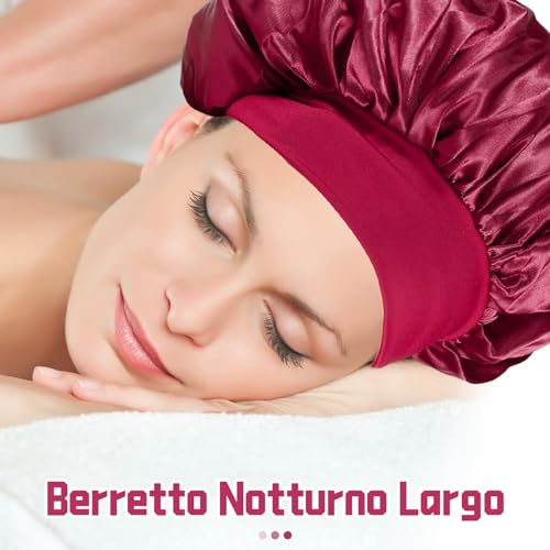 【Funzione ed Effetto】Questa cuffietta per dormire può proteggere i capelli il più possibile, evitando che si aggroviglino. Può anche sigillare l'umidità dei capelli e aggiungere una lucentezza radiosa. Inoltre, la sensazione di setosità può aiutare ad addormentarsi rapidamente.