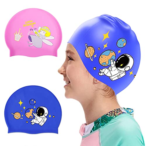 Design unico: la cuffia da nuoto è disponibile in confezione da 2, blu e rosa. La cuffia da nuoto per bambini è stampata con astronauti cartoni animati e simpatici motivi da principessa, belli e carini, e i colori vivaci sono molto popolari tra i bambini.