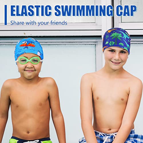 3 Pezzi Cuffia da Nuoto Tinta Unita Cappello da Nuoto in Tessuto di Nylon Cuffia da Bagno Unisex Cuffia da Piscina Antiscivolo per Bagno Nuoto e Sport (Blu, Dinosauro, Pesce)