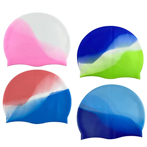 1 Pezzi Cuffia Piscina da Bambini,Impermeabili Cuffie da Nuoto in Silicone per Bambini,Cuffia da Nuoto Blu e Bianco e Rosa Taglia S, ,Cuffia Nuoto per Bambine e Bambini con Capelli Lunghi.