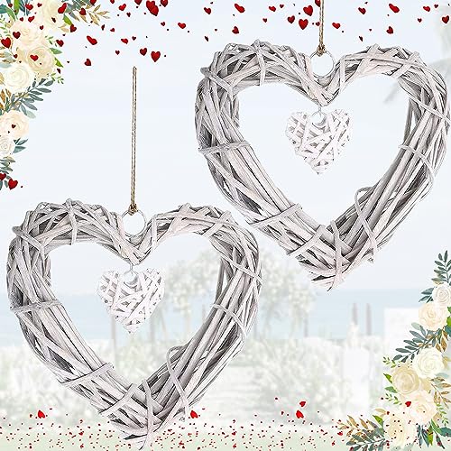2 Pezzi Cuore di Vimini Fai Da Te, Corona di Cuori di Vimini, Cuore Romantico in Vimini, Vimini Cuori Appesi Ghirlande, Adatto per Il Matrimonio, Festa di Compleanno, Decorazione Appesa a Parete