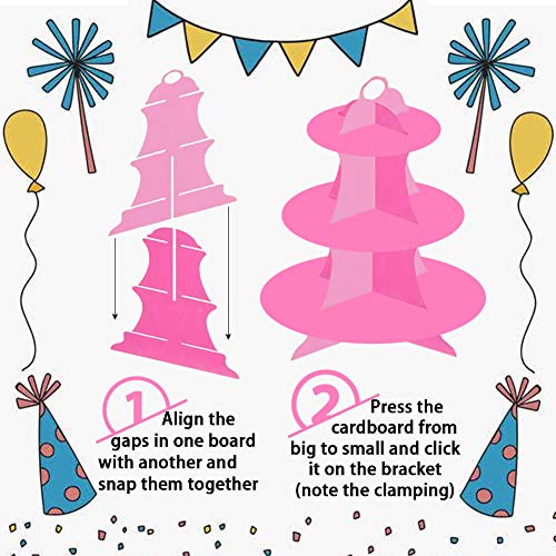 La confezione include - Le robuste torri per cupcake in cartone da 2 pacchi sono costruite con un robusto supporto centrale e 3 dischi colorati rotondi su un lato. Facile da montare e smontare