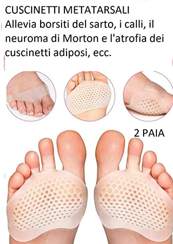 2 Pezzi Cuscinetti Metatarsali - Cuscinetti dell'avampiede per Metatarsalgia in gel al silicone traspiranti per Neuroma - Atrofia - Sensazioni di Bruciore -Allevia il Dolore