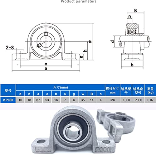 【Blocco di montaggio del cuscinetto】 Cuscinetto del blocco di cuscino KP000 con diametro del foro di 10 mm. Set cuscinetti in metallo per manutenzione e sostituzione accessori per stampanti 3D.