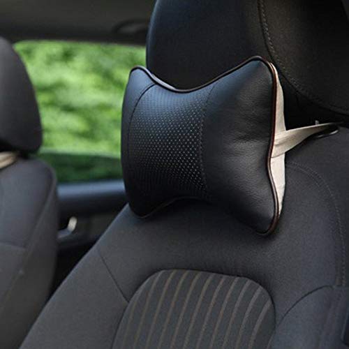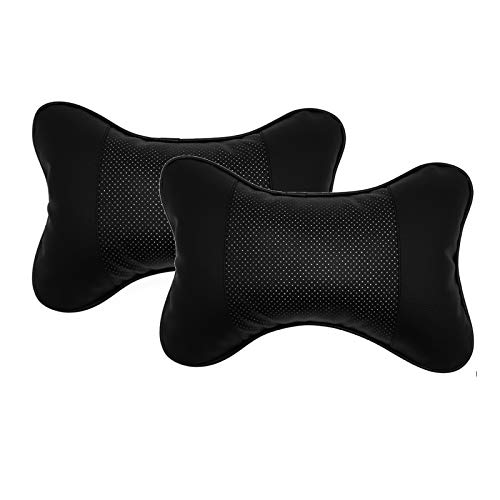 2 Pezzi Cuscino per Collo per Auto, Poggiatesta per Sedile Auto, Cuscino in Pelle PU, Confortevole Cuscino Poggiatesta per Viaggi, per Poggiatesta per Seggiolino Auto(Nero)