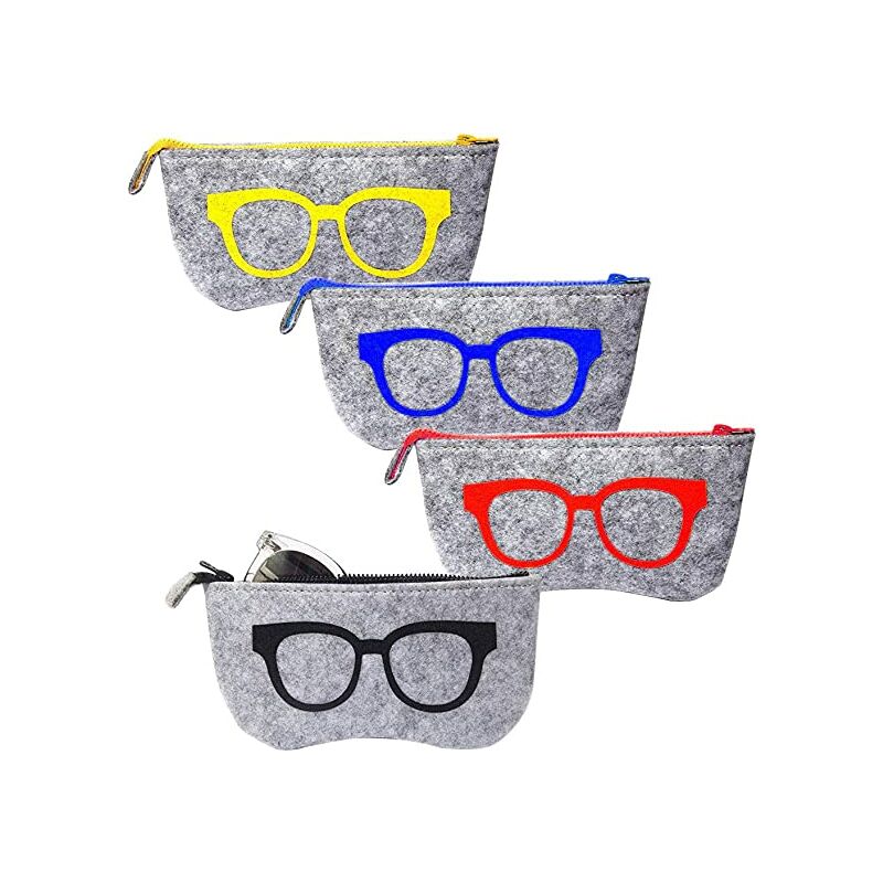 Protezione degli occhiali - Il materiale in feltro è morbido e resistente, il che può impedire agli oggetti appuntiti di graffiare gli occhiali, proteggere gli occhiali dalla polvere, proteggere le lenti, garantire che gli occhiali siano puliti e sicuri e prolungare la vita di gli occhiali. Dopo essere stato gettato, può essere riciclato e riutilizzato senza inquinare l'ambiente. [Piccolo e facile da trasportare] Questa borsa per occhiali è molto leggera. La borsa per occhiali compatta è molto comoda da trasportare. La borsa per occhiali dal design portatile può essere riposta in una tasca o in uno zaino. Non occupa spazio né aumenta il carico di viaggio.Il design con cerniera impedisce agli oggetti di cadere facilmente. [Borsa per occhiali in quattro colori] Questo set include quattro borse per occhiali: blu, giallo, rosso e nero . Non solo i tuoi diversi occhiali possono essere protetti bene, ma il prezzo è più favorevole. Con diversi colori, puoi identificare rapidamente gli