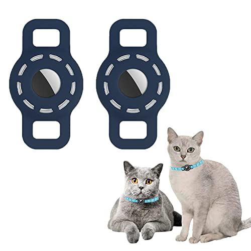 2 Pezzi Custodia Silicone Protettiva Per AirTag,Collare Per Gatto AirTag Accessori,Compatibili con Apple AirTag,per il Tracciamento Cani/Gatti/Animale Domestico Collare e Bambini/Borse (Blu scuro)