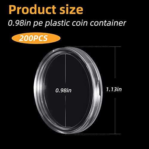 200 Pezzi Custodie per Monete 25mm Monete di Collezione in Plastica Capsule di Monete Rotonde Trasparente con Scatola Organizzatore per La Raccolta di Monete