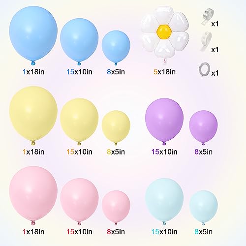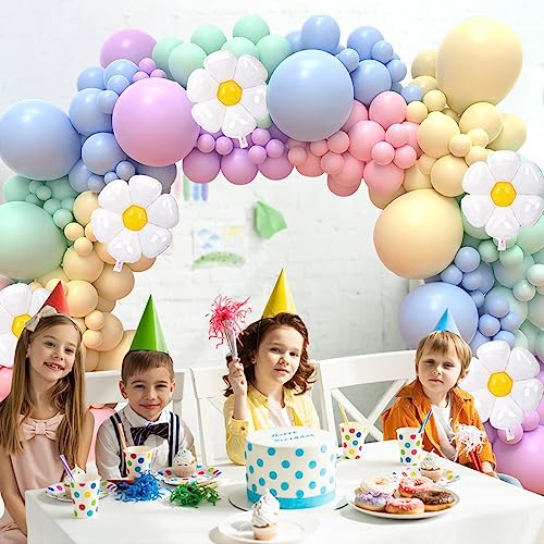 123 Pezzi Daisy Palloncini Kit Ghirlanda Pastello Palloncini Lattice, Colorati Palloncini Compleanno per Baby Shower, Matrimonio, Anniversario, Battesimo Bambino, Compleanno