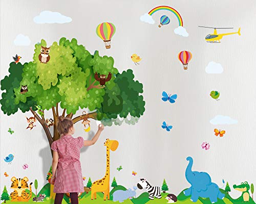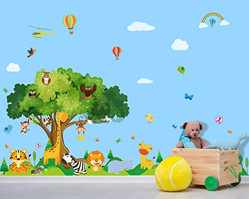 4 Pezzi Decalcomania Murale Animale Adesivi Murali Animali Autoadesivi Camera Bambini Adesivi Scene Zoo per Asilo Scuola Neonati Bambini Decorazione Stanza