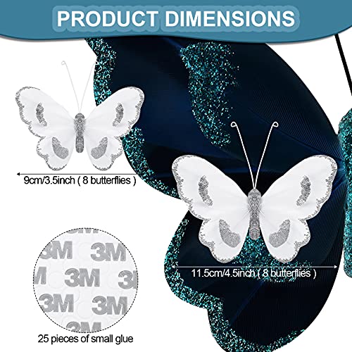 16 Pezzi Decalcomanie a Farfalle 3D da Parete Farfalla a Doppia Piuma Decorazioni da Muro per Ragazze Camera da Letto Asilo Classe Ufficio Bambini Bagno Tutte Stanze (Bianco con Argento)