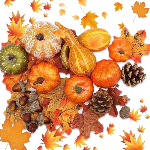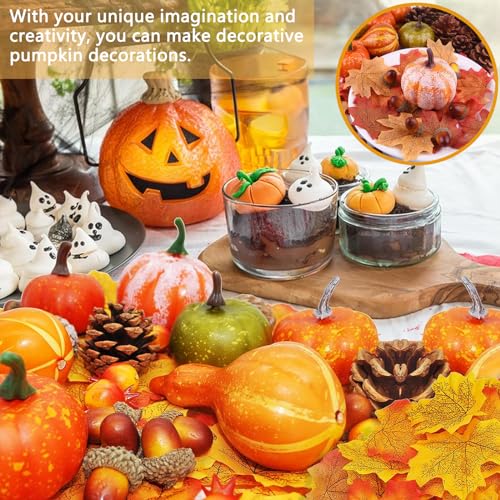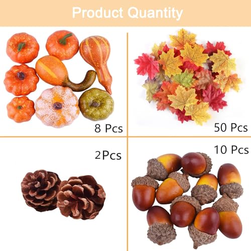 70 Pezzi Set per Decorare la Zucca Autunnale, Mini Zucche Finte di Acero Artificiale, Pigne e Ghiande, Per la Decorazione Autunnale di Halloween Del Ringraziamento