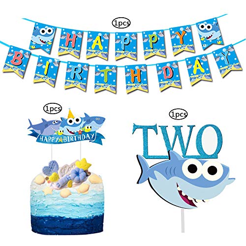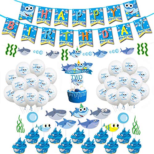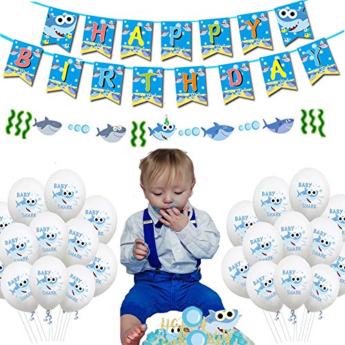 39 Pezzi Decorazione Compleanno a Tema Squalo, Squalo Decorazioni Compleanno Kit, Compresi Banner, Palloncini e Cake Topper, per la Festa Compleanno