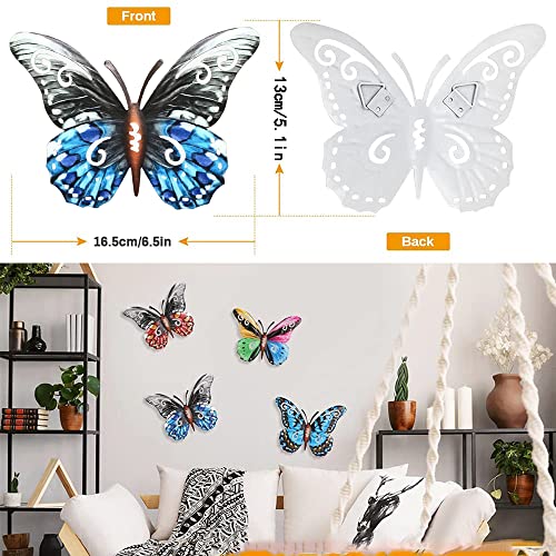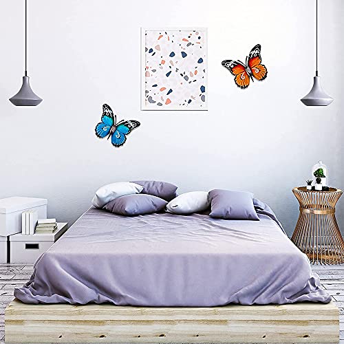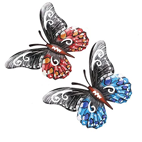 2 Pezzi Decorazione Farfalla in Metallo,Sculture Parete Forma Farfalla,3D Farfalla in Ferro Battuto,Decorazione Colorata per Camera da Letto, Soggiorno,Giardino,Corridoio (Rosso,Blu)