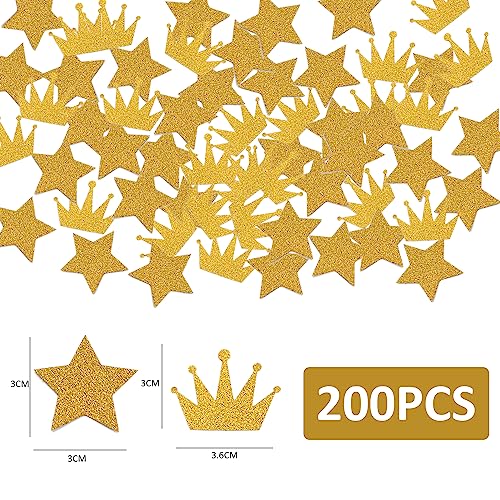 200 pezzi, decorazione per feste di compleanno, confetti, feste a tema confetti, disponibile nelle forme dorate a stella e corona dorata